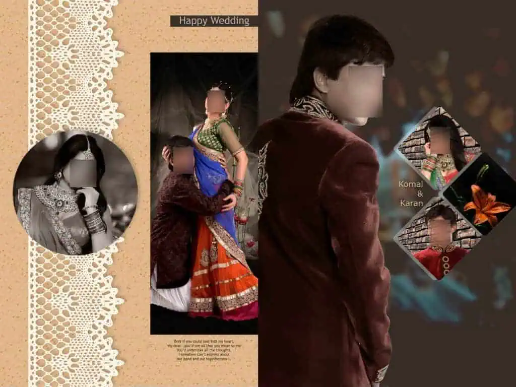 We are sharing here all needs for album designing material like Wedding Album PSD, Fonts, Studio Backgrounds, Photo Collages, logos, Cards Design, Wedding Clip-arts, and all needs of graphic designing materials. Keep in touch with our website.